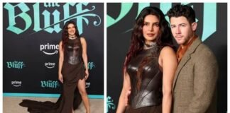 Actors and producers Priyanka Chopra Jonas and Nick Jonas arrive at the world premiere of the film 'The Bluff' in Los Angeles on...