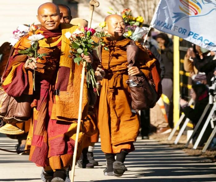 Texas. The peace march of Buddhist monks continues in the US state of Texas. 19 Buddhist monks are traveling with an Indian dog. This swan has been named Aloka by the Buddhist monks. This group of Buddhist monks has set out on a 2300-mile trek from Fort Worth to Washington DC. They are welcomed everywhere and people also provide them vegetarian food. The arrangements for staying are also made by the residents of the place where they come from. Buddhist monks have become a symbol of peace. The purpose of this yatra is to spread the message of compassion and peace among the people.